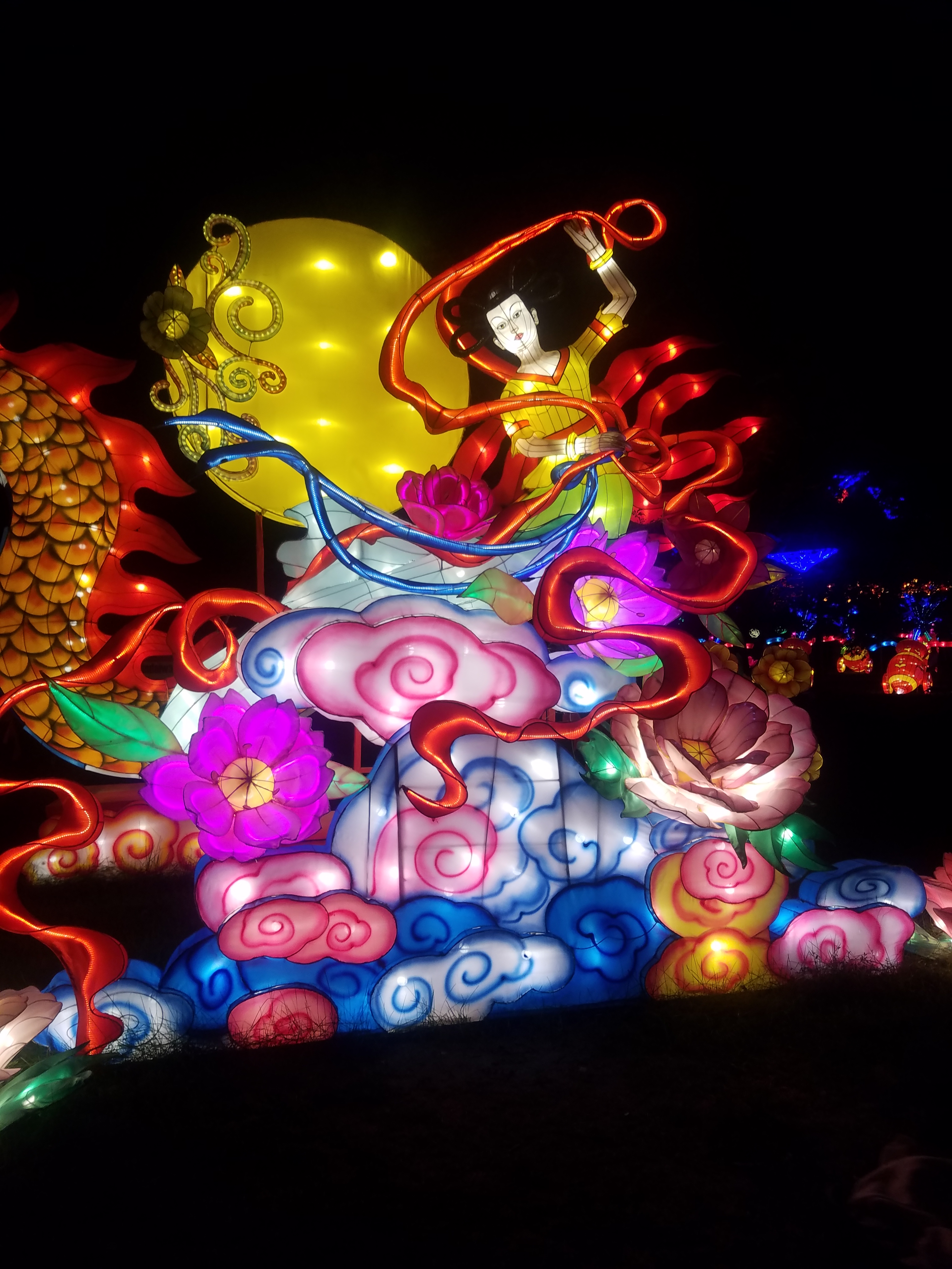 If you EVER have a chance to see “The Dragon Lights” presented by Tianyu Arts & Culture Inc it’s a must see. The lanterns were beautiful and were handmade in China. They have been put on display all over the United States for people to enjoy.